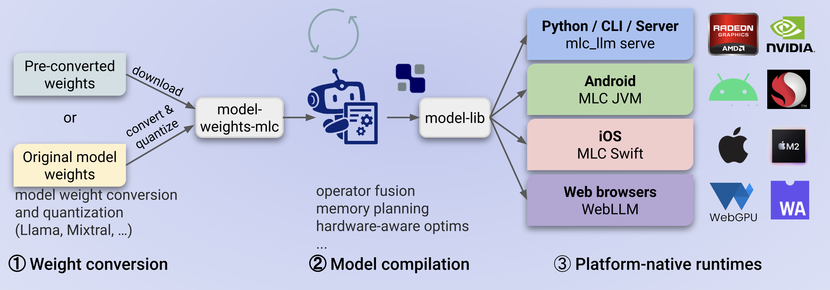 At a high-level, the MLC LLM project makes it possible to embed smaller LLMs (under 10B parameters) on edge devices through a streamlined, three-step process: